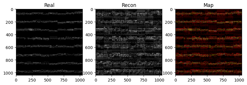 grid_recon, grid_real, grid_map, evals = viz_mae_recon(img_recon, img_real, enc_out=None, epoch=0, debug=False, return_maps=True)