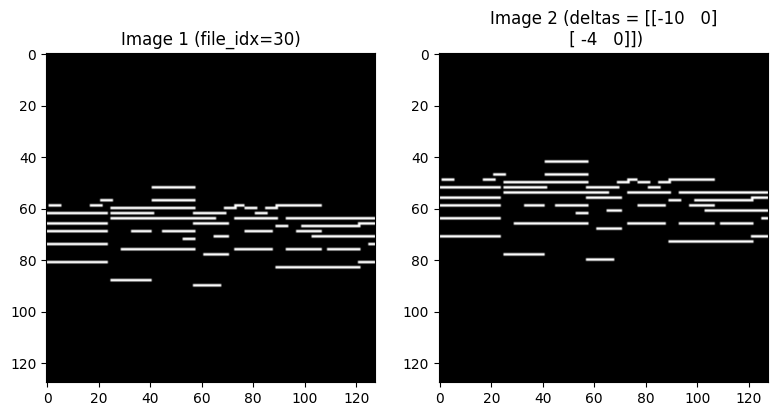 axes[1].set_title(f'Image 2 (deltas = {deltas[idx].cpu().int().numpy()})')